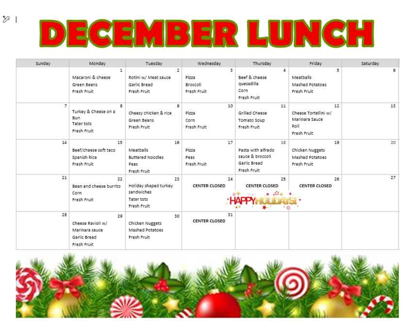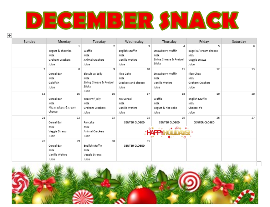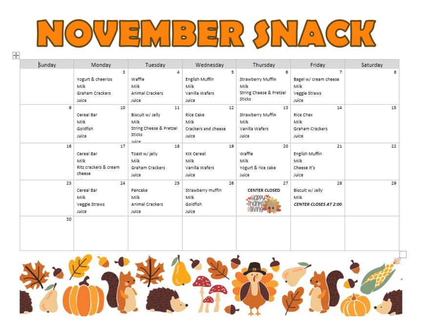 The center complies with all local health ordinances, inspections and State recommended guidelines regarding children's nutrition.